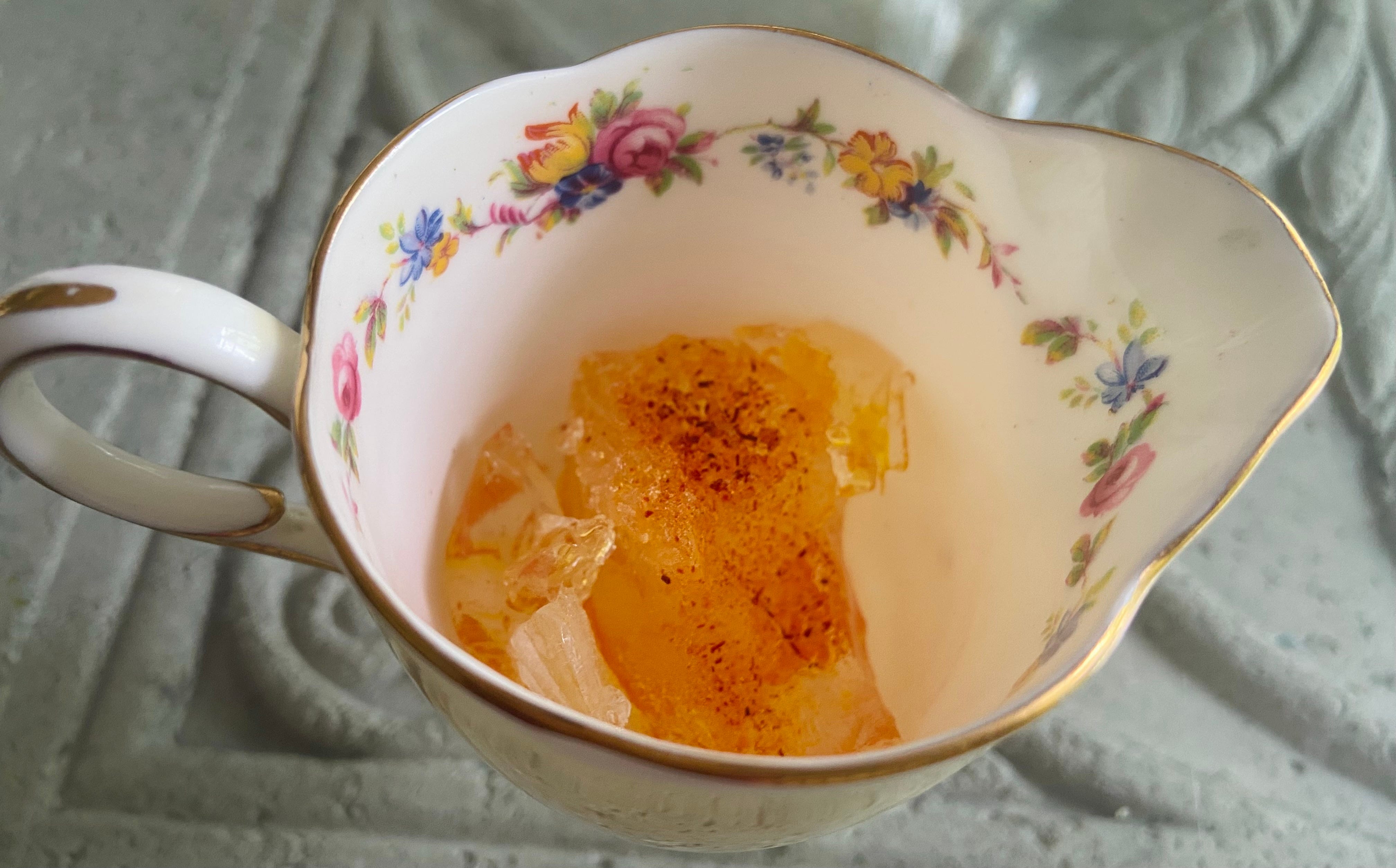 1/4 tsp ground saffron dissolved on 2 ice cubes* (see below for detailed instructions)