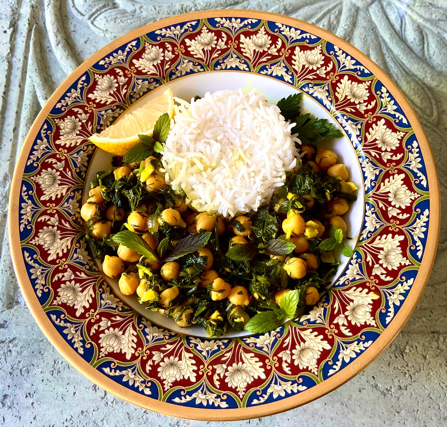 122. Persian inspired chickpea herb stew with basmati rice