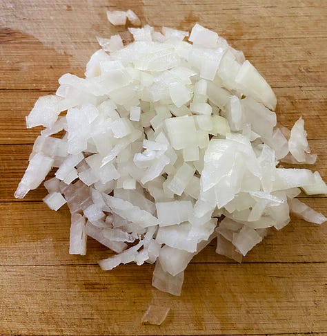 2. In a preheated to medium high, nonstick pan, add the olive oil, onion, sauté until softened then stir in the garlic. Sauté another minute.
