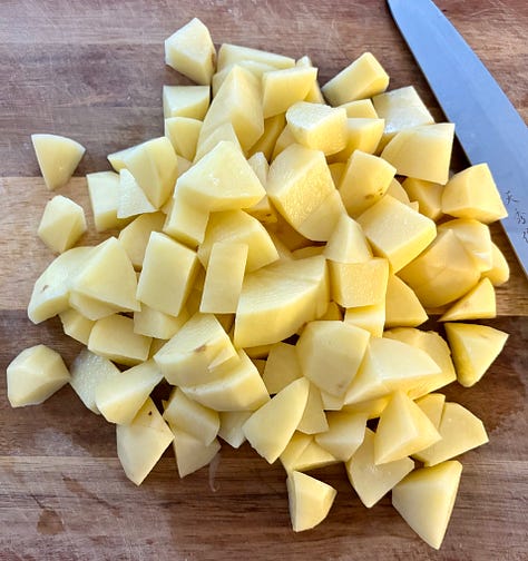 2-3 potatoes - For best results use Yukon Gold, Russet (Idaho), Maris Piper or King Edward - peeled and cut into bite sided pieces